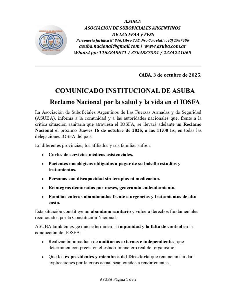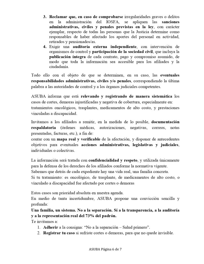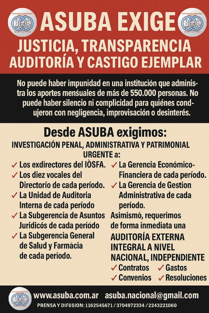 Desde ASUBA exigimos que la Justicia investigue, que se audite todo, y que los responsables enfrenten las consecuencias.