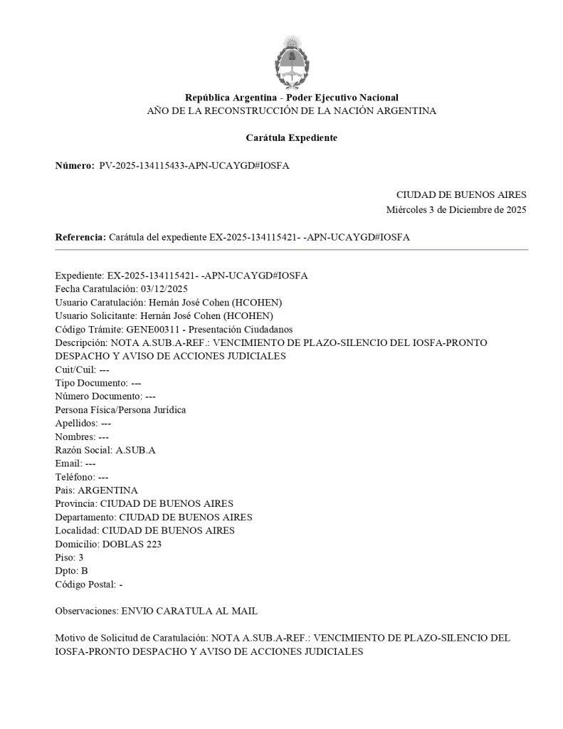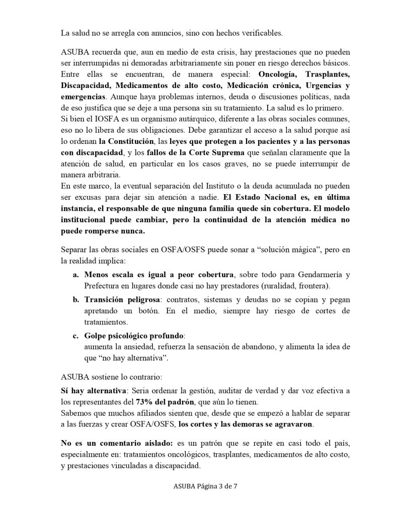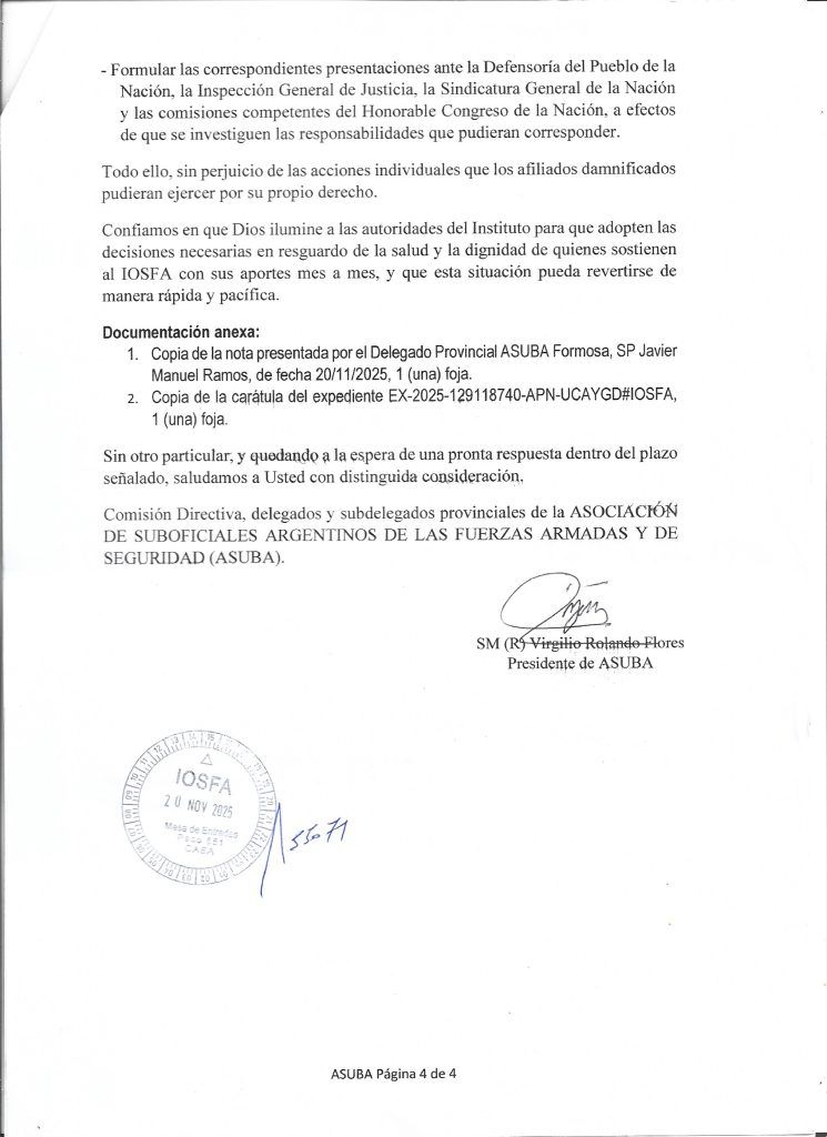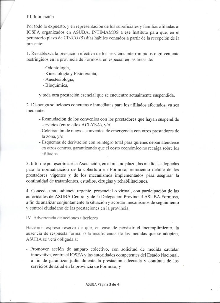 Reunión de ASUBA con abogados representantes de Defensoría del Pueblo de Formosa, presentación reclamo por suspensión de servicios médicos 11:50 hs hasta las 13:00 hs – 3 de noviembre 2025